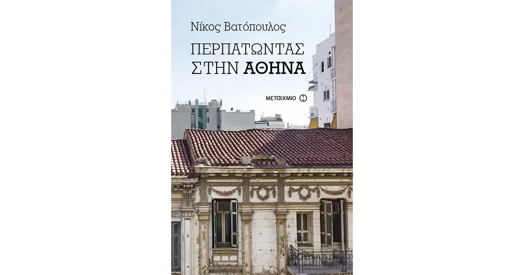 Το «Περπατώντας στην Αθήνα» του Νίκου Βατόπουλου έφτασε στα χέρια μου μόλις κυκλοφόρησε από τις εκδόσεις Μεταίχμιο. Καθώς έχω μια ιδιαίτερη επαφή και αγάπη για την Αθήνα -είναι η πόλη μου- ένιωσα ότι το βιβλίο δεν έπρεπε να λείπει από τη βιβλιοθήκη μου. Πρόκειται για μια μικρή, προσεγμένη έκδοση που αποτελεί ουσιαστικά το αποθησαύρισμα κειμένων, “σπαράγματα πρόσφατων μοναχικών περιπλανήσεων”, όπως έχουν δημοσιευθεί στην κυριακάτικη στήλη «Πτυχές» της εφημερίδας Καθημερινής.